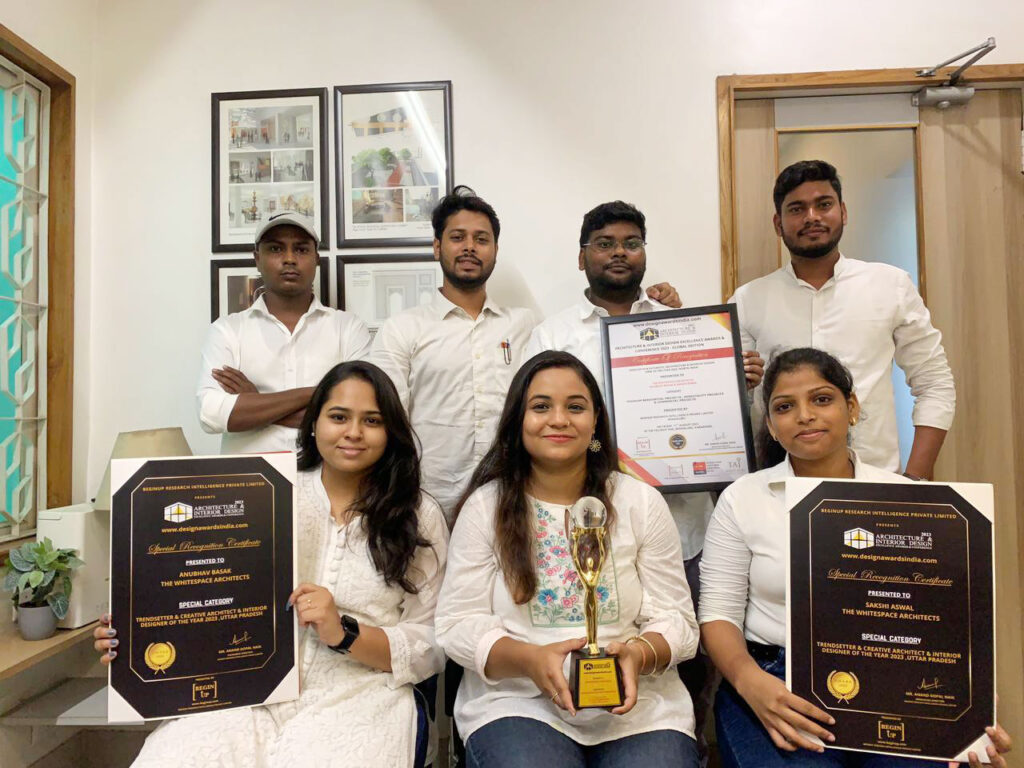 Helmed by the visionary couple, Anubhav Basak and Sakshi Aswal, the studio began its journey as Anubhav Design Atelier in 2018, amassing an impressive portfolio of over 40 completed projects across seven cities. The Whitespace Architects, an architecture and interior design studio, offers comprehensive services such as planning, exterior façade design, interior design, furniture design and landscape design. Their expertise spans diverse scales, ranging from 100 sqft to 100,000 sqft, encompassing residential, hospitality, commercial, industrial and more. Constantly pushing boundaries with innovative concepts, WA have received two awards “Innovative & Futuristic Architecture & Interior Design Firm of the Year 2023” North India Award under “Premium Residential Projects , Hospitality Projects & Commercial Projects” Category for the year 2023 (GLOBAL EDITION) & “Trendsetter & Creative Architect & Interior Designer of the Year 2023 , Uttar Pradesh ” presented by BeginUp Research Intelligence Global Edition, held at The Taj West End, Bangalore on August 11, 2023. Besides this, WA projects have been also been featured on renowned magazines like Architect’s Dairy, Architect & Interiors India, Home Publication, Interior Lover and more.